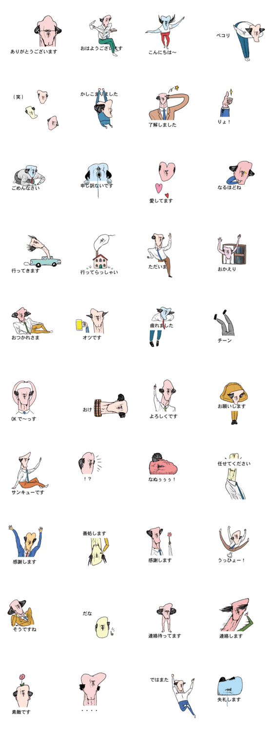 | スタンプ説明 | ハゲててもハゲてなくても、おっさんが使えるようなハゲのスタンプです。 |
