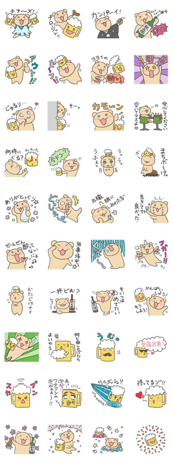 大好評「呑んべえクマ!」第二弾!ビールと日本酒をこよなく愛するクマのお酒大好き酔っ払いスタンプ。飲み会、女子会、歓送迎会はもちろん、お花見、花火に海ネタもあり!