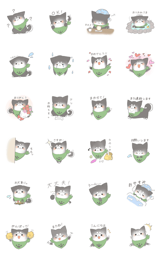 | スタンプ説明 | 緑のバンダナがお気に入りの黒柴さんスタンプです! |
