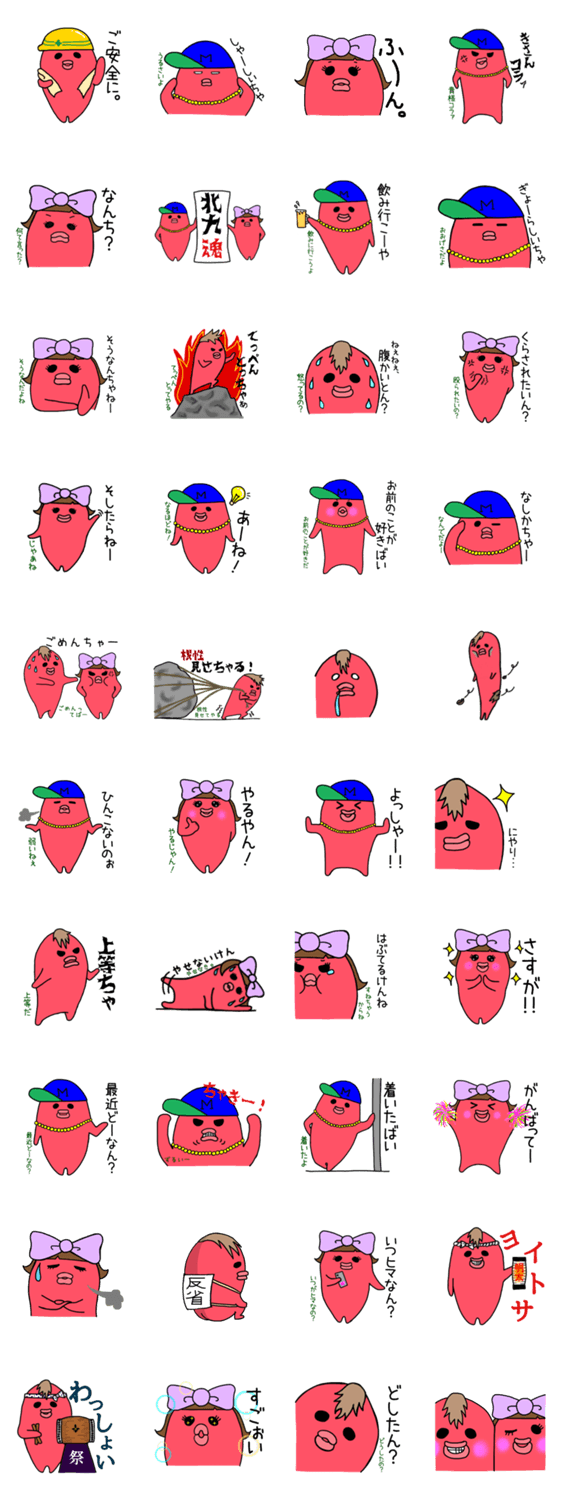 | スタンプ説明 | 博多名物の明太子から生まれたMr.MENTAMANとcoddyちゃん。今回は北九州弁ver.です!標準語の訳付きなので、誰でも使えます! |