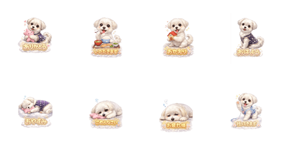 | スタンプ説明 | ふわふわマルチーズMOKOが日常の気持ちをかわいく表現!あいさつ、感謝、謝罪など毎日の会話にぴったり。やさしい雰囲気の癒し系スタンプです。 |