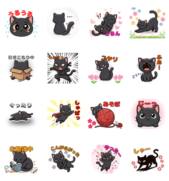 | スタンプ説明 | ほのぼの可愛い黒ネコの、表情豊かなスタンプです。 |