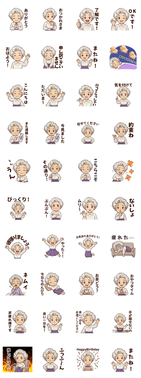| スタンプ説明 | 毎日のあいさつや感謝、ちょっとした返事に使いやすいスタンプです。明るく前向きな大人の女性の日常にぴったり。気軽に送れて会話がやさしく楽しくなります。 |