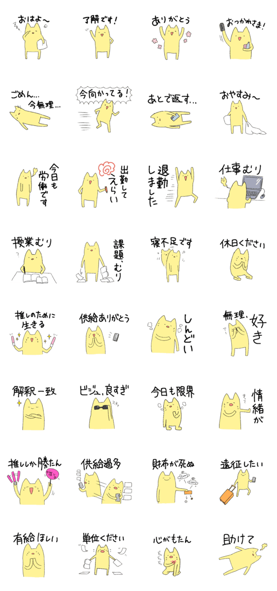 | スタンプ説明 | ややオタクなキツネのようなネコのようないきものです。良い推し活ライフを! |