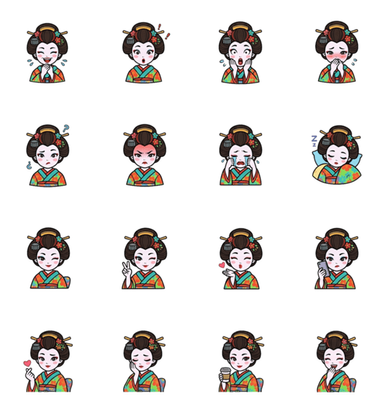 | スタンプ説明 | 着物や日本文化、アニメが好きな方へのプレゼントにも最適。上品で可愛い「エモい」スタンプを探している方に。 |