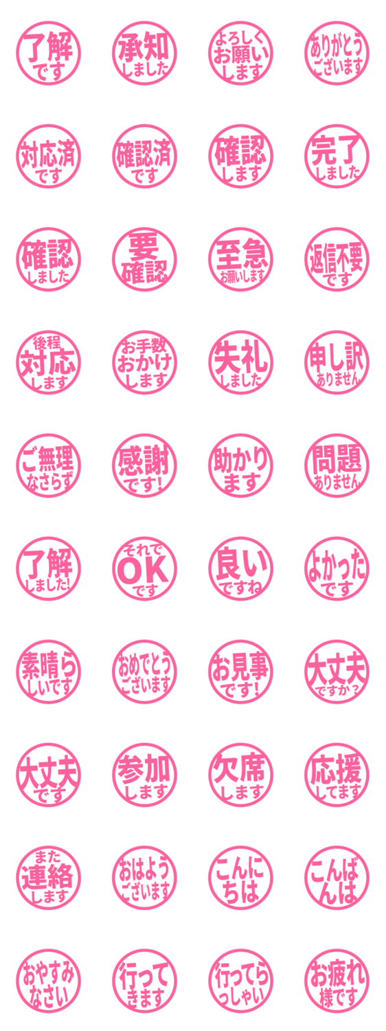 | スタンプ説明 | シンプルな敬語のはんこ風スタンプです。毎日の連絡や仕事の返事に使いやすいデザインです。 |