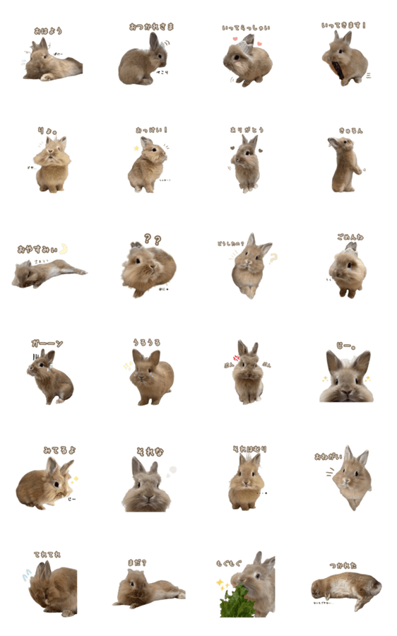 | スタンプ説明 | ちいさなかわいいうさぎ「ノエル」の日常スタンプです。 毎日使いやすいあいさつ・リアクションを集めました |