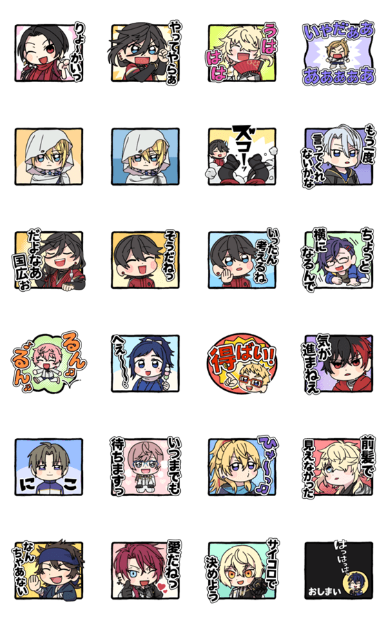 | スタンプ説明 | どたばたしている刀剣男士たちのスタンプです ※LINE Creators Collaboration『刀剣乱舞ONLINE』参加スタンプです。 |
