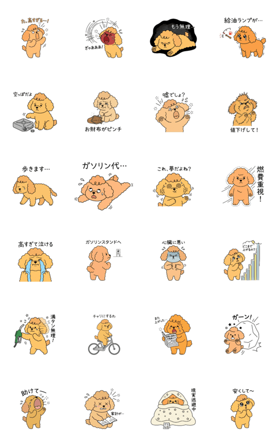 | スタンプ説明 | ガソリン高騰!!辛い今、トイプードルが叫びます。 |