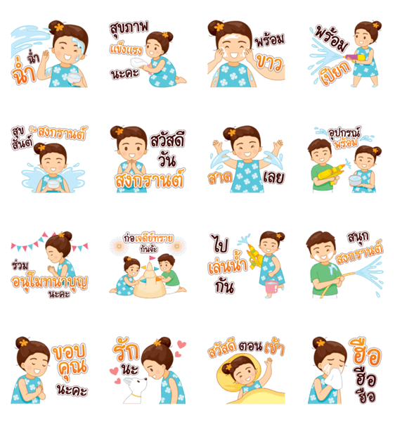 | スタンプ説明 | A girl "Matoom" fun in Songkran festival at Thailand |