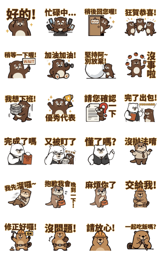| スタンプ説明 | [Enter the Otters] Relatable Office Otter, Tech Beaver, & the Iceberg Boss! Speak your truth and survive the corporate grind. 24 essential office expressions! |