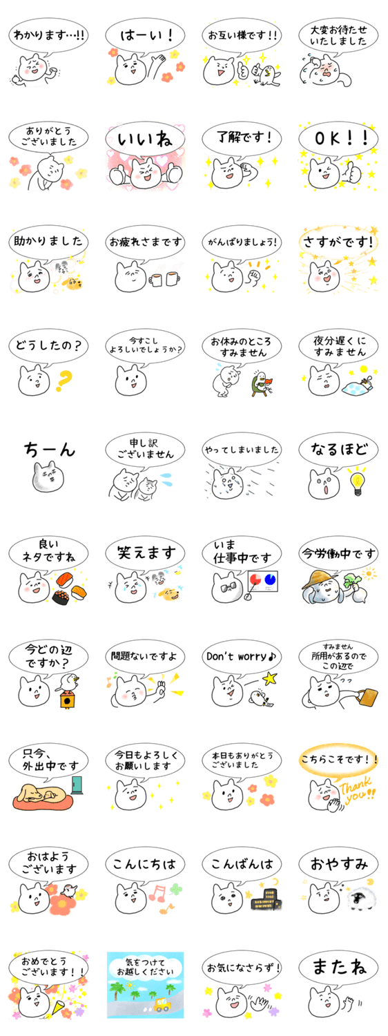 | スタンプ説明 | 日常的に使える挨拶、会話スタンプです。ほんわかとした白猫がお話しします♪宜しければお使いください! |