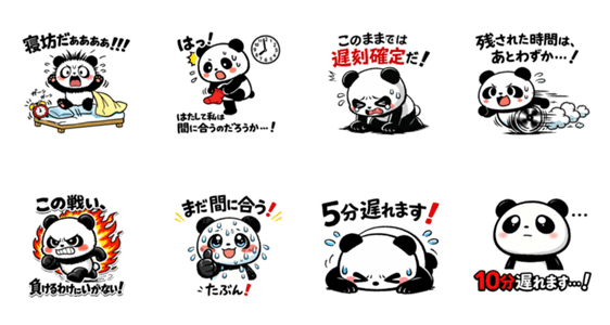 | スタンプ説明 | 朝、目が覚めた瞬間に始まる壮絶なバトル……!二度寝の誘惑に打ち勝ち、迫りくる時計の針と戦うすべての「遅刻予備軍」に捧げるスタンプです。 |