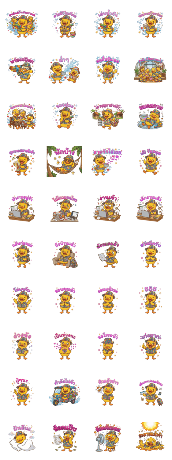 | スタンプ説明 | Tookky Duck is having fun on Songkran Day. |