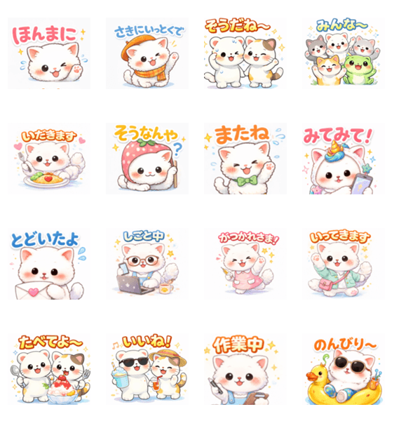 | スタンプ説明 | A fluffy cute kitten sticker set for daily chats. Includes greetings work messages and meal moments. Easy to use sweet and relaxing design for everyone. |