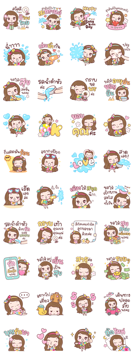 | スタンプ説明 | Splash, smile, and celebrate Songkran. |