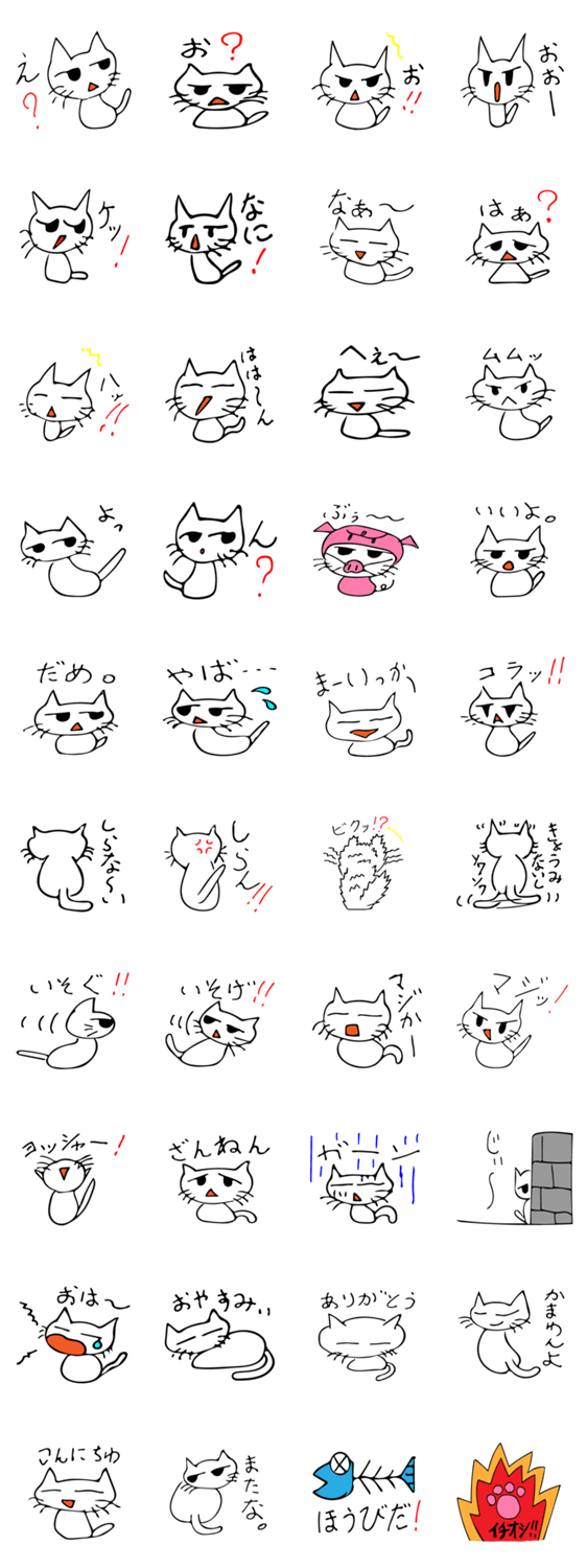 ねこです。じと目です。かる〜く、使い勝手のいい「じとねこ」たちです。