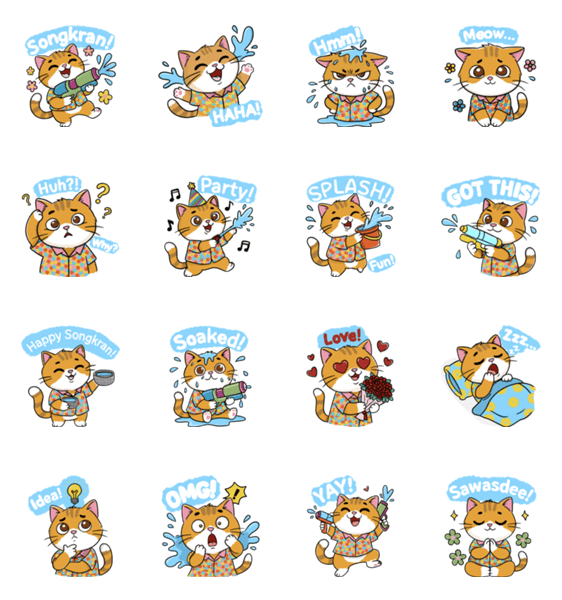 | スタンプ説明 | ソンクラーンにぴったりの、愛らしいトラ猫の置物!水かけ合戦やパーティー、普段の挨拶にも最適です。家族や友人との会話に、ちょっとした楽しさを添えてくれます。 |