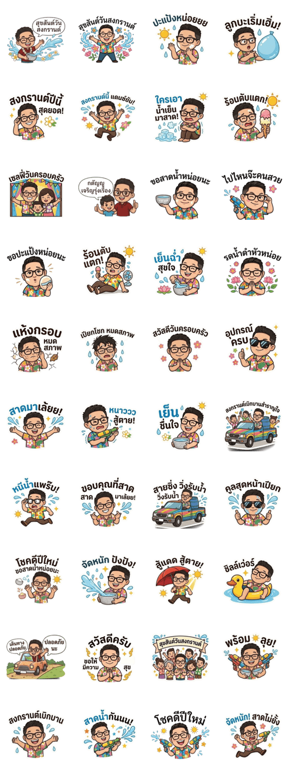 | スタンプ説明 | Lovely Glass Man Action on Songkran festival |