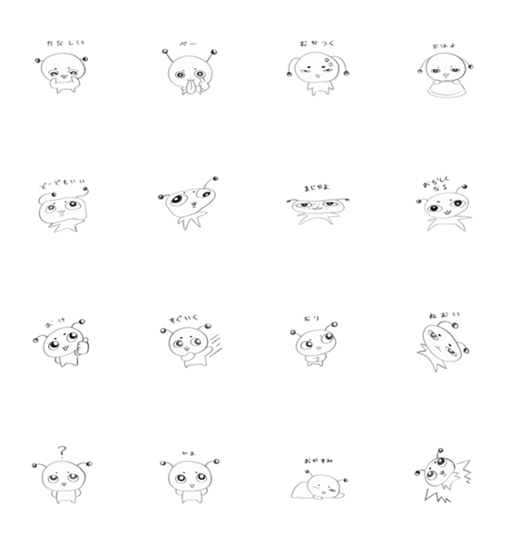 | スタンプ説明 | 適度に使いやすく、適度に可愛い宇宙人2世を愛してね |