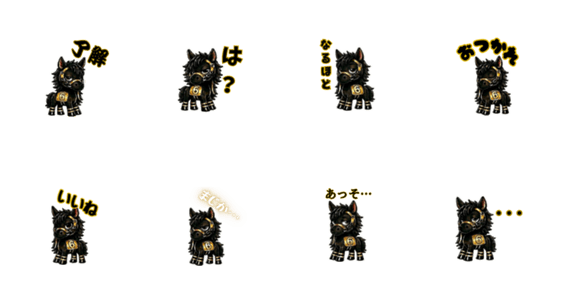 | スタンプ説明 | クールで少しクセのある黒馬キャラのひとことスタンプです。日常会話で使いやすい言葉を8種類まとめました。 |