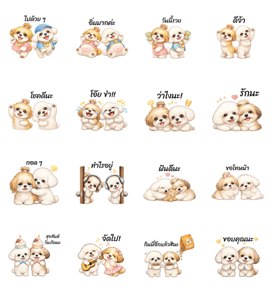 | スタンプ説明 | Adorable Shih Tzu and Poodle stickers with fluffy charm and playful expressions! Perfect for everyday chats-cute, funny, sleepy, and sassy moods all in one set. |