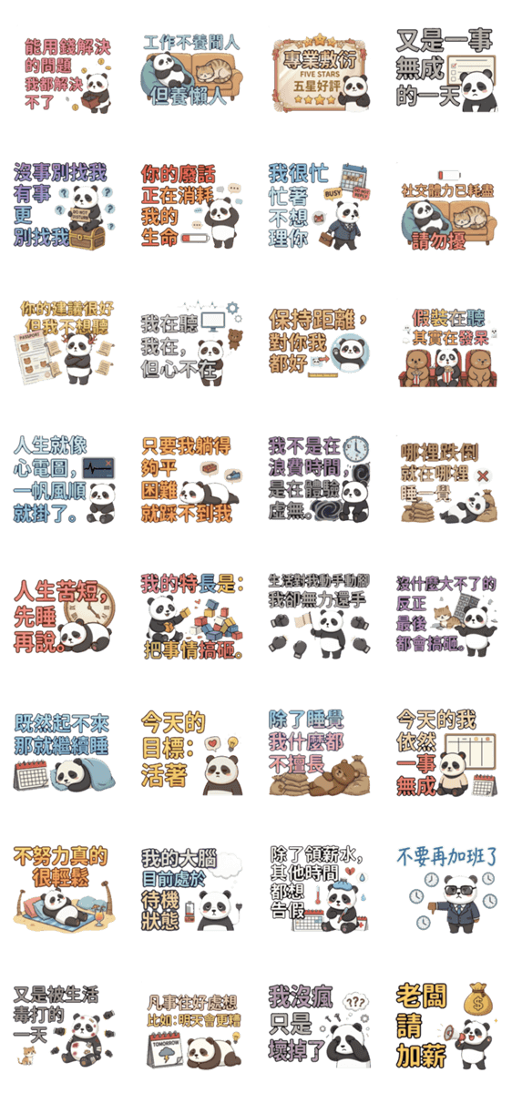 | スタンプ説明 | Panda: Life is too short, let's sleep first. |
