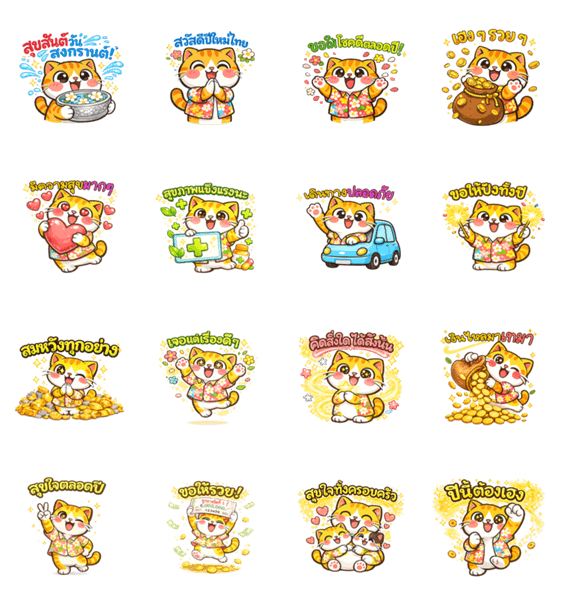 | スタンプ説明 | A cute and cheerful orange chubby cat named Nu Som Ouanbrings good luck, happiness, and prosperity to your chats. Perfect for sending blessings every |