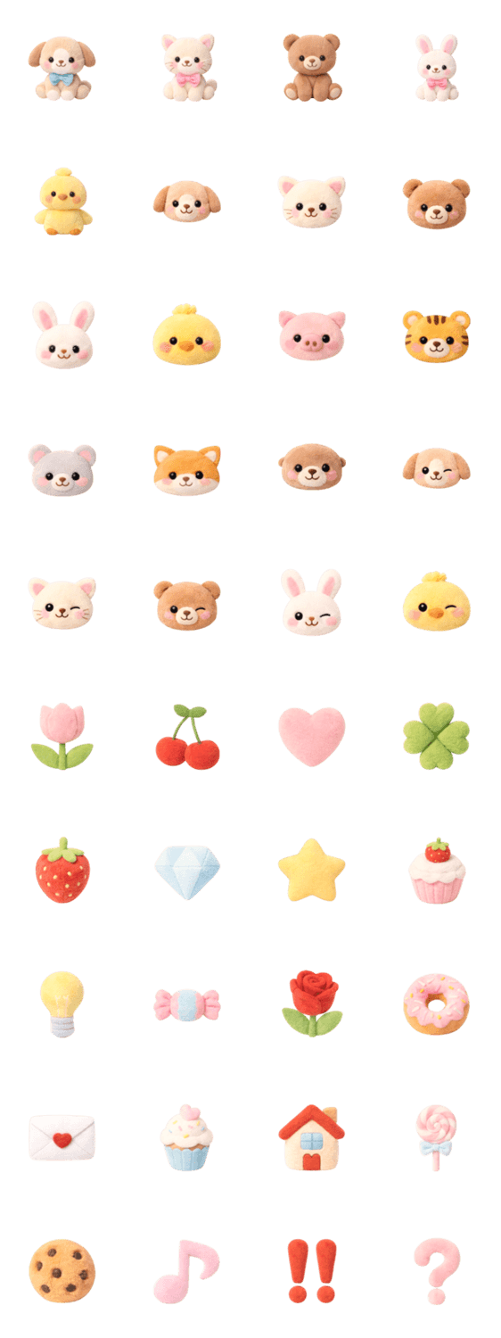 | スタンプ説明 | 動物/犬/ネコ/うさぎ/クマ/ヒヨコ/トラ/キツネ/カワウソ/ブタ/デコ/女児/人形/おもちゃ/ふわふわ/ぷっくり/文末/人気 |