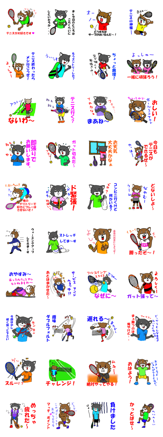 | スタンプ説明 | テニスをやってる人なら1度は経験あるかもしれない(あるある)スタンプです。いろんな場面で使って下さい。 |