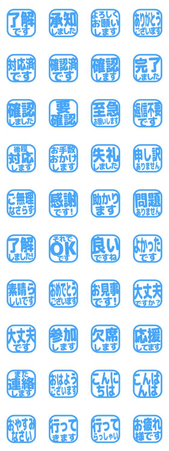 シンプルな敬語のはんこ風スタンプです。毎日の連絡や仕事の返事に使いやすいデザインです。