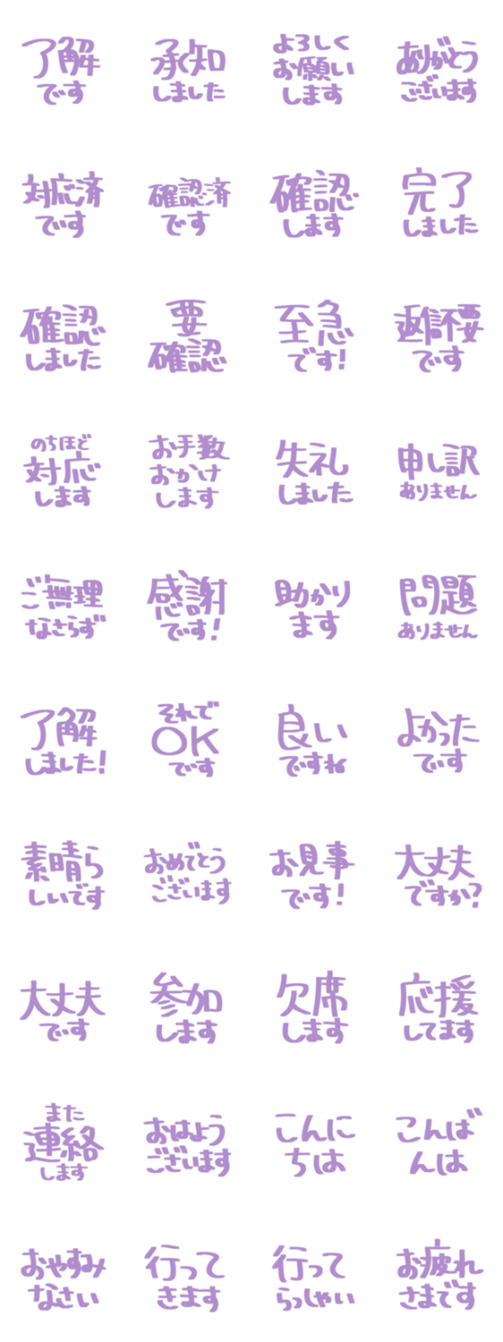 シンプルな敬語の手書き文字スタンプです。毎日の連絡や仕事の返事に使いやすいデザインです。