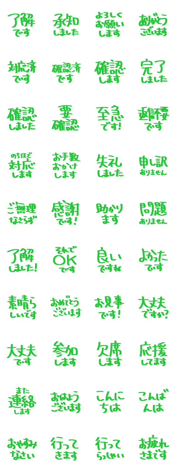 シンプルな敬語の手書き文字スタンプです。毎日の連絡や仕事の返事に使いやすいデザインです。