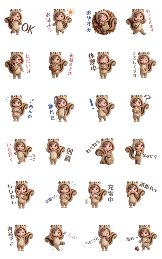 | スタンプ説明 | 3Dのぷにぷに質感がかわいい、淡色系うさぎ女子の日常スタンプです。恋人/カップル/友達/家族/挨拶/リアクション/女の子/丁寧/くすみカラー/癒し系/動物/りす/もふもふ |