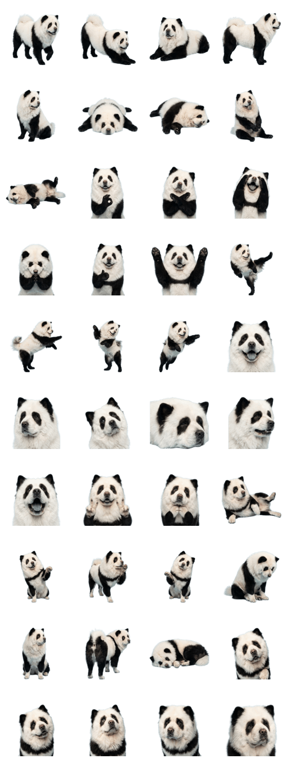 | スタンプ説明 | パンダ犬の可愛いカラーリング表情豊かな動物写真。もふもふ中国原産犬大型犬ペットお洒落派手シュール面白い挨拶日常会話トリミング個性的かわいいゆるい家族友達仕事お祝 |
