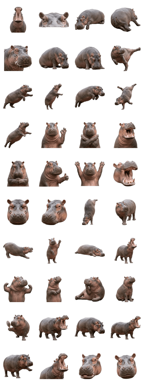 | スタンプ説明 | 迫力満点かつ可愛い河馬の表情豊かな動物写真。野生動物最強アフリカ癒やしシュール面白い挨拶日常会話本物個性的かわいいゆるい家族友達仕事お祝い人気綺麗自然珍しいプレ |