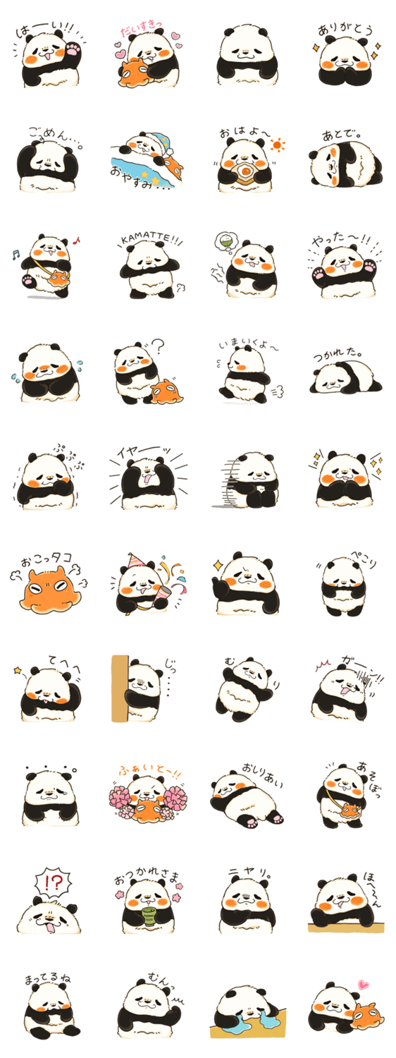 | スタンプ説明 | ふわふわ食いしん坊で表情豊かな子パンダのぱんちゃんがLINEスタンプに登場!!ぬいぐるみのおともだちのメンダコめんちゃんも友情出演してるよ! |