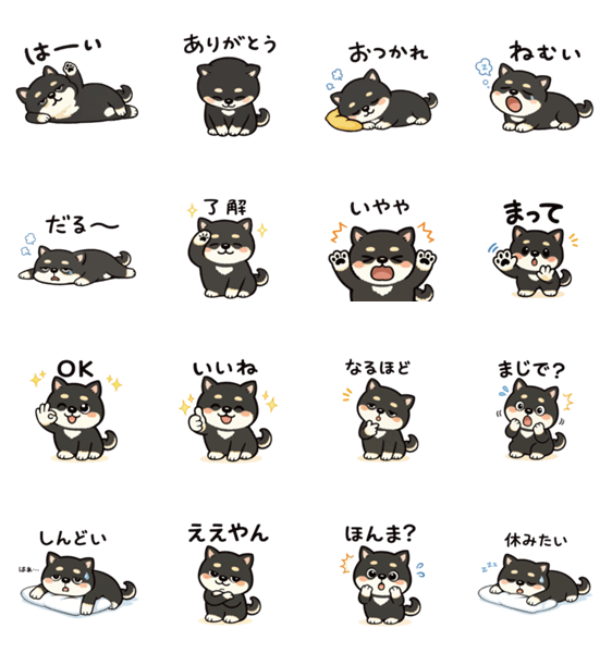 | スタンプ説明 | ゆるくてだる〜い黒柴のスタンプです。ねむい、だるい、おっかれ〜、まってなど、日常で使いやすい言葉を集めました。かわいく気持ちを伝えられます。 |