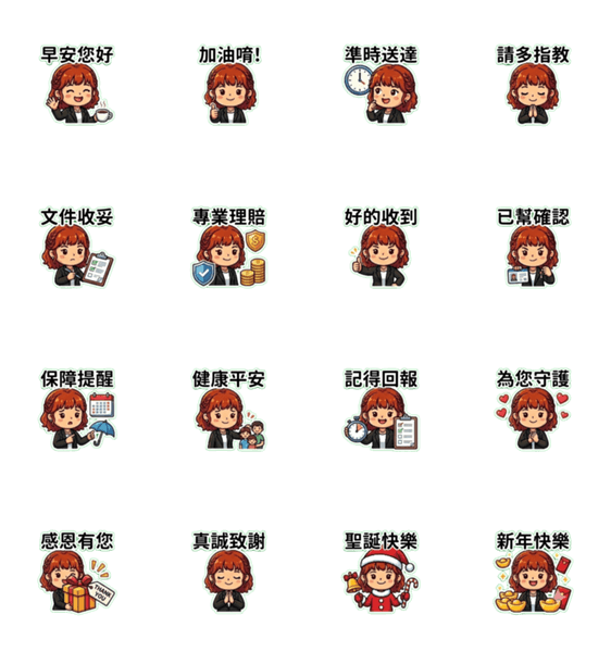 | スタンプ説明 | The Reliable Chibi Insurance Advisor |