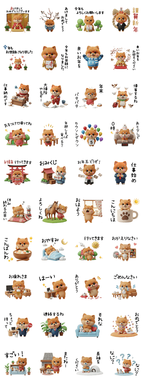 | スタンプ説明 | 3Dタッチでふわふわ可愛いポメラニアンが、お正月らしい着物姿で登場。 あけおめ・ことよろ・お年玉など、新年のあいさつから日常会話まで幅広く使えるスタンプです。 |