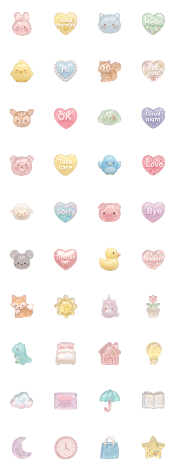 | スタンプ説明 | うさぎ/ネコ/トリ/クマ/イヌ/動物/3D/女児/ファンシー/ゆめかわ/ぷくぷく/ドロップ/キラキラ/デコ/ステッカー/シール交換/デコ/平成/Y2K/リアクション/挨拶/使える/人気 |
