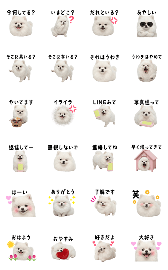 | スタンプ説明 | もふもふの短足ポメラニアンです。犬好きにおすすめ。恋人があやしいときに使おう。(犬,ポメラニアン,彼氏,彼女,カップル,恋人,嫉妬,浮気,不倫) |