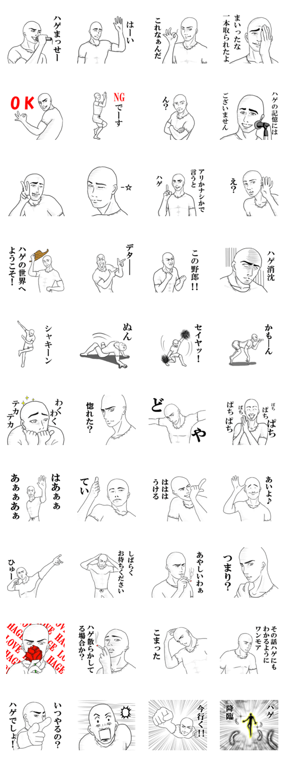 ハゲの世界へのお誘いもこれで3度目になりますね、これからハゲ往く方々の不安をとり除くべくこのスタンプを送ります、、以下省略。変顔うざ顔有