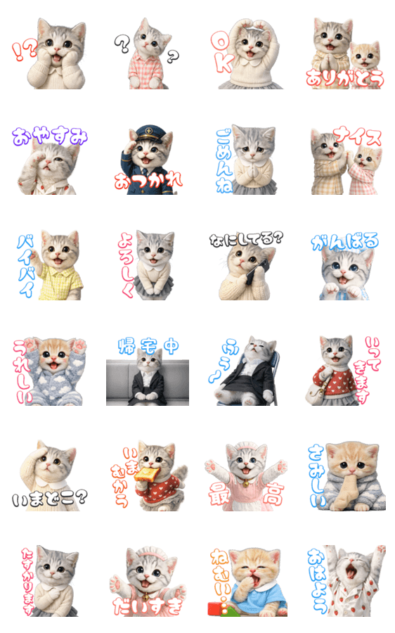 | スタンプ説明 | 社畜ねこのむぎの日常で使いやすいゆるかわスタンプだにゃ! 毎日のトークをむぎと一緒に癒そうにゃ! |
