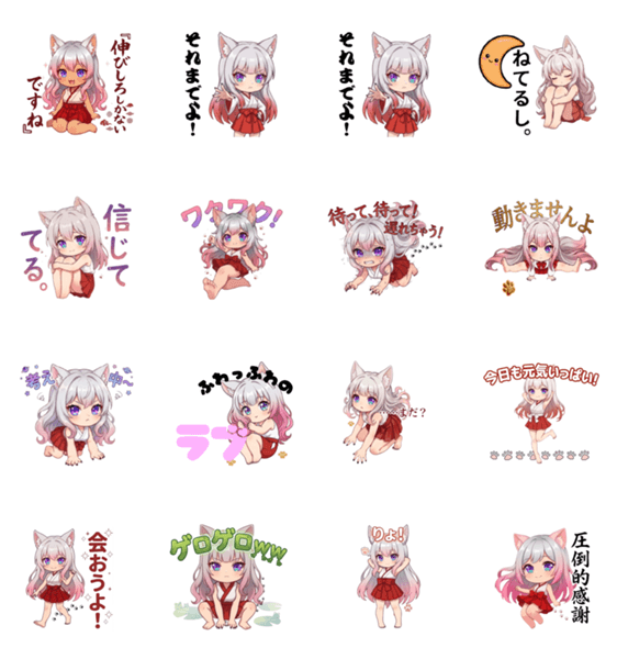 | スタンプ説明 | 「穏やかで知恵深い天狐、梓真(あずま)をご紹介します。日々の想いを優雅に、そして少しの魔法を添えて伝えるためのスタンプです。」 |
