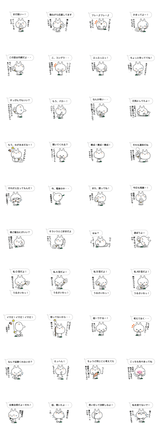 自分の吹き出しのメッセージに合わせて、ぼやいたり、突っ込んだりする ふきだしスタンプ!うさぎバージョンです。