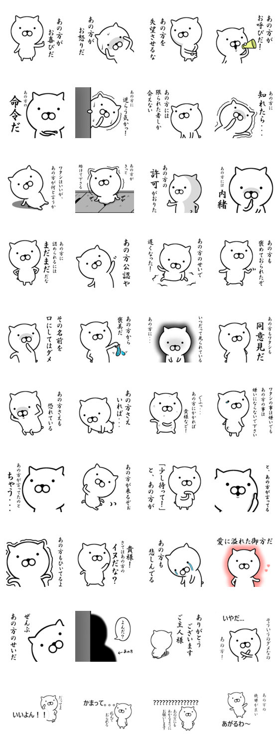 あの方に仕える、ねこのスタンプです。あの方とは誰なのか。それはあなた次第です。