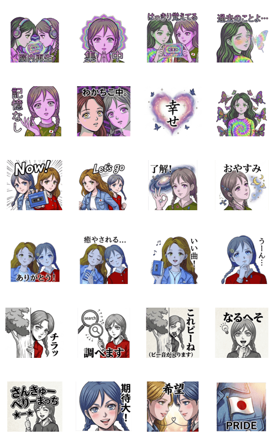 | スタンプ説明 | 犯罪・オカルト系ポッドキャスト番組「わかちこ伝説」の二人のパーソナリテイーのキャラクタースタンプです! 色々なタッチのスタンプを試したい方用にMIX版を作りました。 |