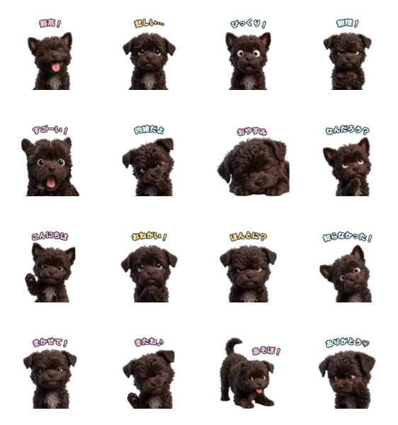 | スタンプ説明 | チワプーの愛くるしい表情やしぐさを描いた、日常で使いやすいスタンプ。 挨拶から喜怒哀楽まで、豊富なバリエーションでトークを楽しく彩ります。 |