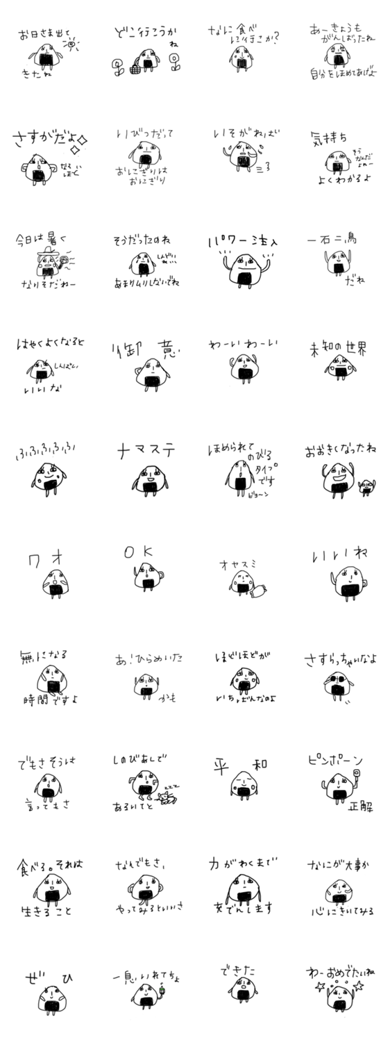 | スタンプ説明 | おにぎり子達の言葉スタンプです。おにぎりにはまり毎日食べていたら、大好きな人からヒントをもらえて誕生したおにぎり子ちゃんです。日々に感謝。 |